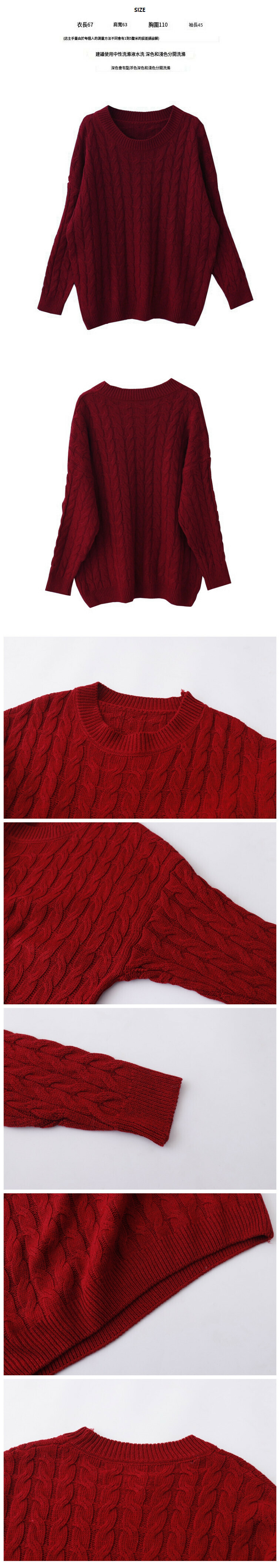 熱賣麻花套頭毛衣【酒紅色】【均碼】