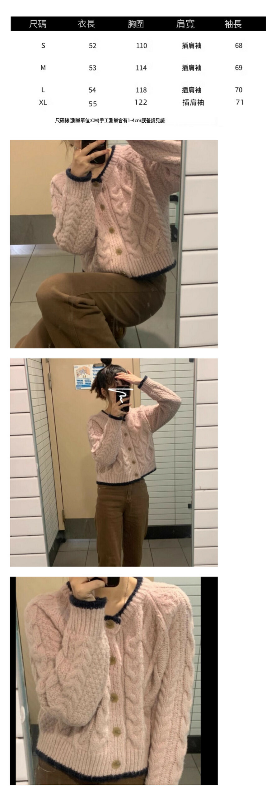 熱賣麻花毛衣開衫【雀斑粉】尺碼【S碼—XL碼】【下單後請聯絡客服確認發貨尺碼】