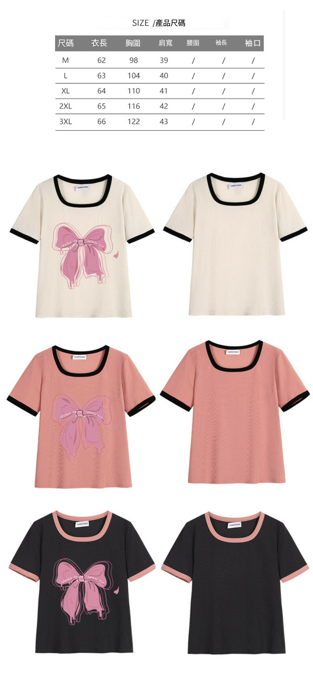 熱賣U領正肩印花短袖T恤【杏色】【M-3XL碼】(下單後請聯絡客服確認發貨尺碼)