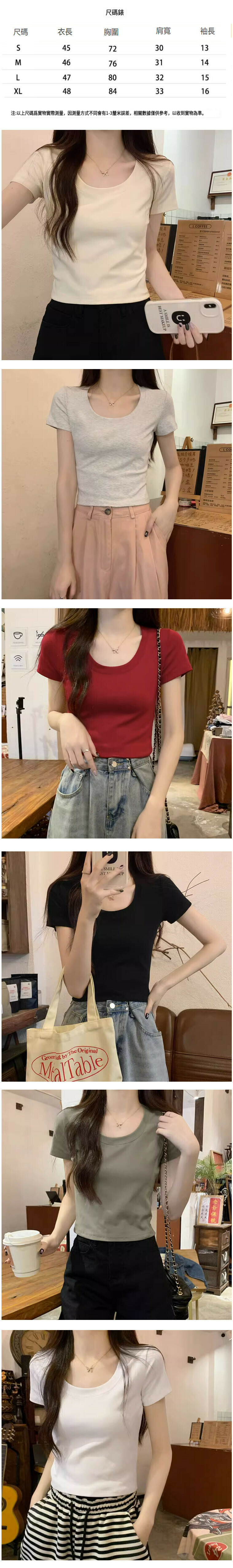 熱賣U領正肩短袖T恤【軍綠色】【S-XL碼】(下單後請聯絡客服確認發貨尺碼)