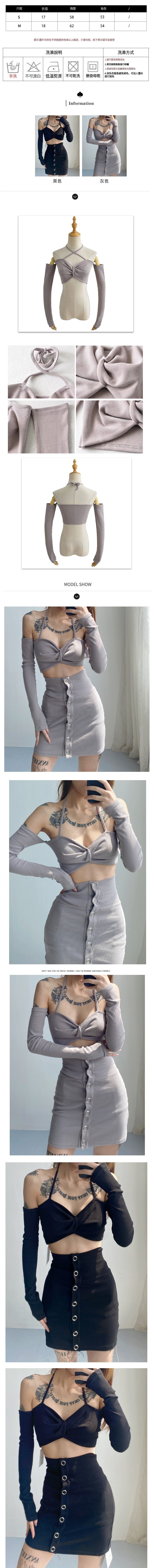 熱賣超短款吊帶長袖T卹(灰色)(S/M碼)(下單後聯絡客服確認發貨尺碼)