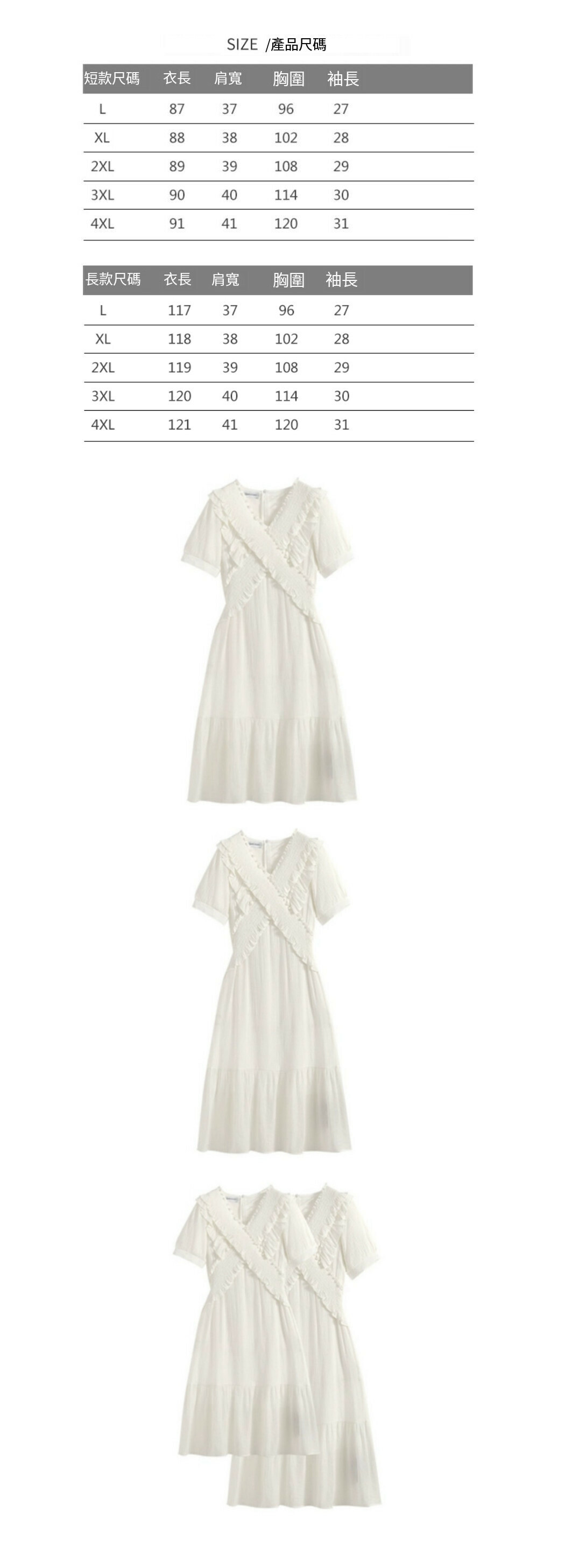 熱賣V領連衣裙【白色(短款)】【L-4XL碼】(下單後請聯絡客服確認發貨尺碼)