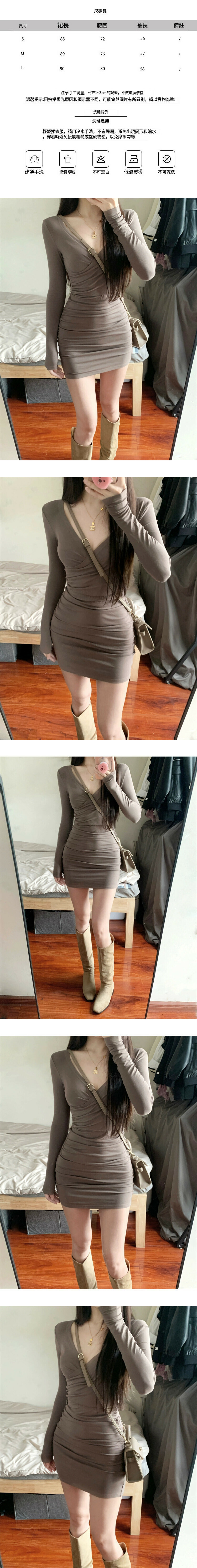 熱賣V領包臀連衣短裙(S-L碼)(棕色)(下單後聯絡客服確認發貨尺碼)