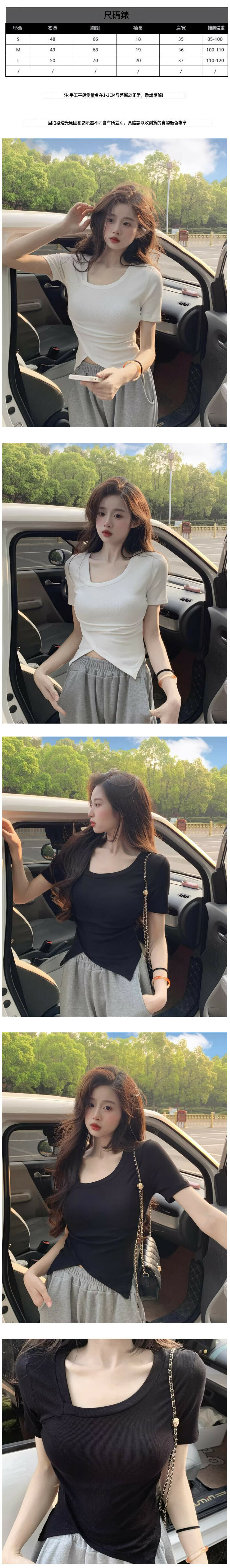 熱賣v領不規則短袖T恤【黑色】【S-L碼】(下單後請聯絡客服確認發貨尺碼)