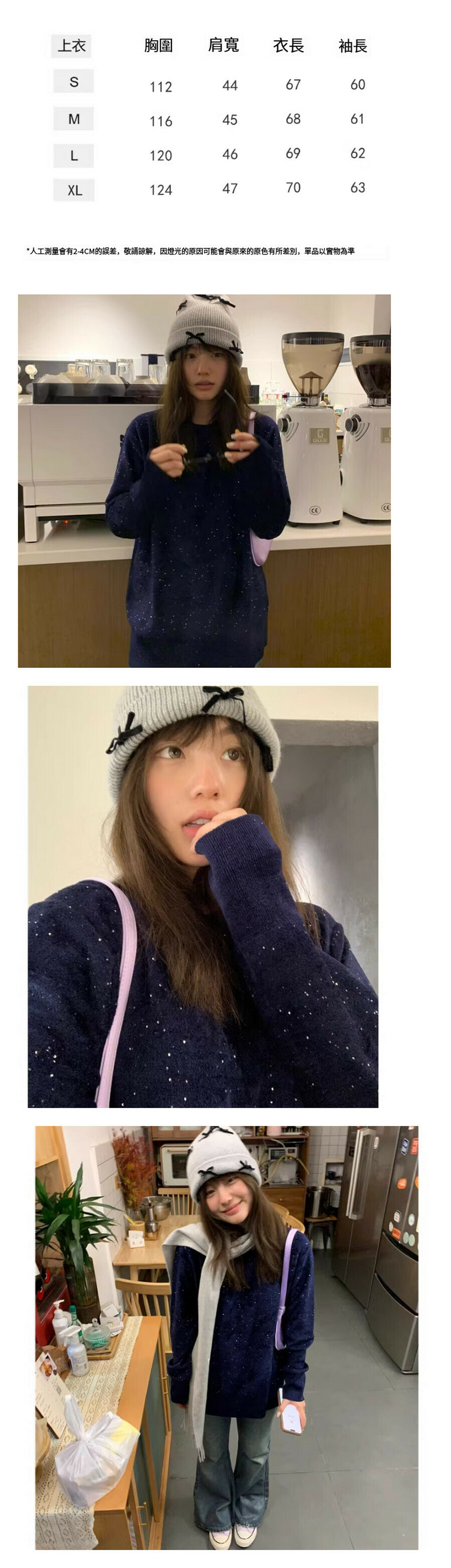 熱賣V領針織寬鬆毛衣【星空藍【不包含圈巾】】尺碼【S碼—XL碼】【下單後請聯絡客服確認發貨尺碼】