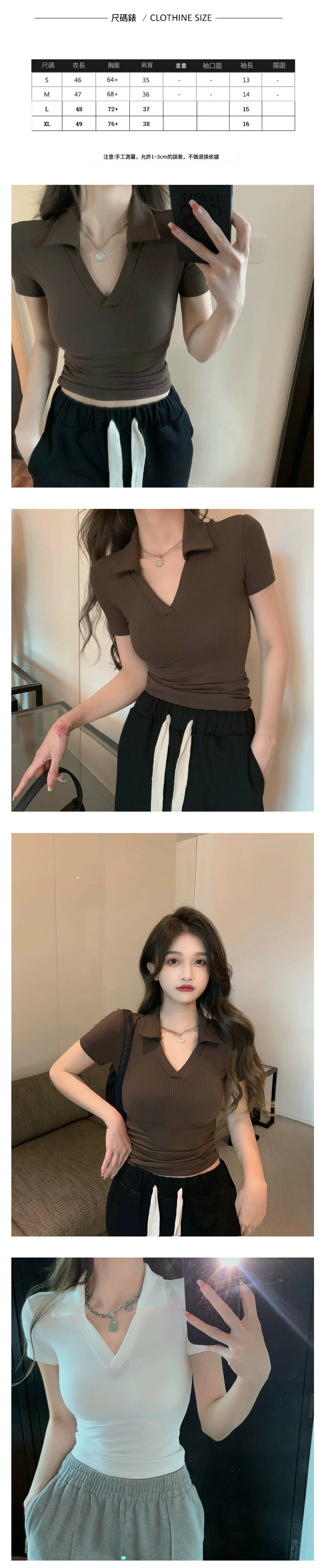 熱賣v領針織polo短袖T恤【白色】【S-XL碼】(下單後請聯絡客服確認發貨尺碼)