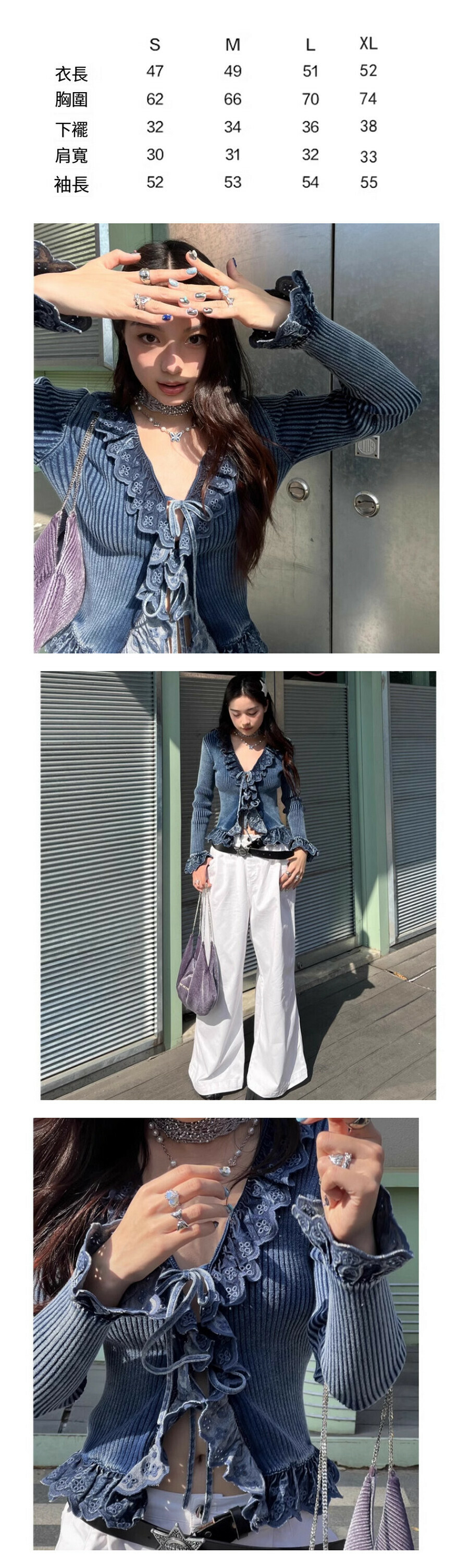 熱賣V領系帶長袖上衣【藍色】尺碼【S碼—XL碼】【下單後請聯絡客服確認發貨尺碼】