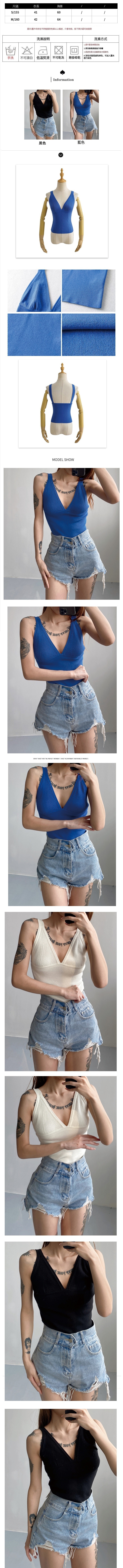 熱賣V領低胸針織吊帶背心(藍色)(S/M碼)(下單後聯絡客服確認發貨尺碼)