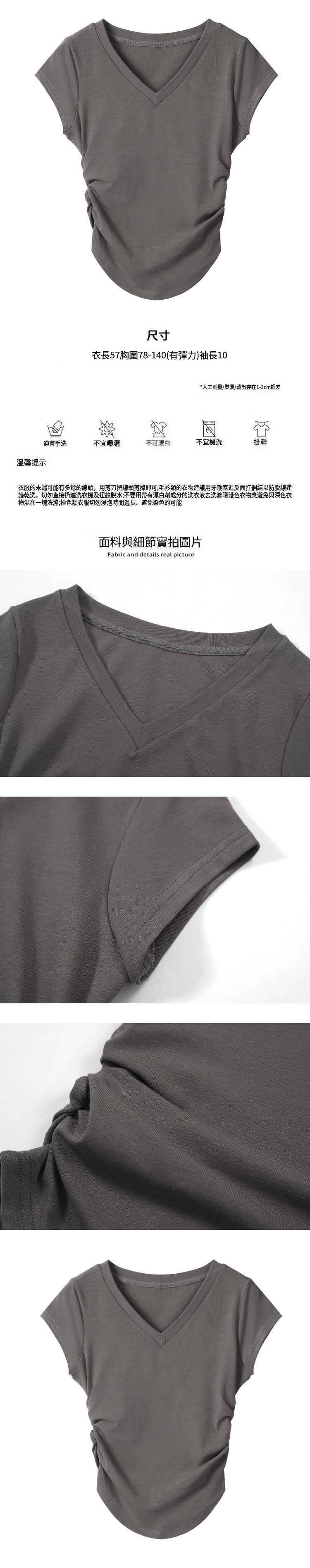 熱賣V領皺褶短袖T恤(咖啡色)(均碼)