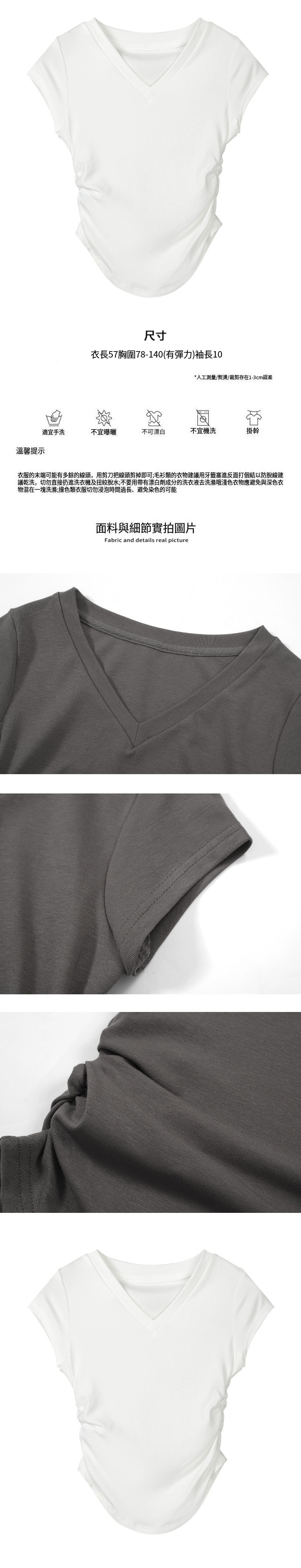 熱賣V領皺褶短袖T恤(白色)(均碼)