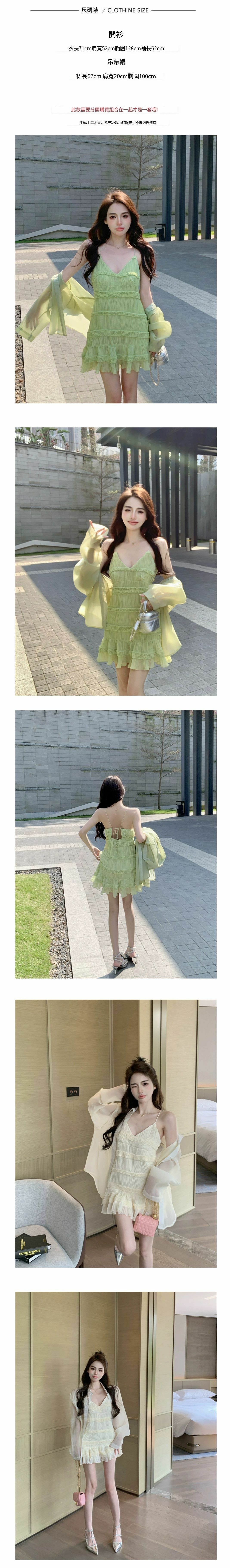 熱賣v領褶皺吊帶連衣裙【綠色】【均碼】