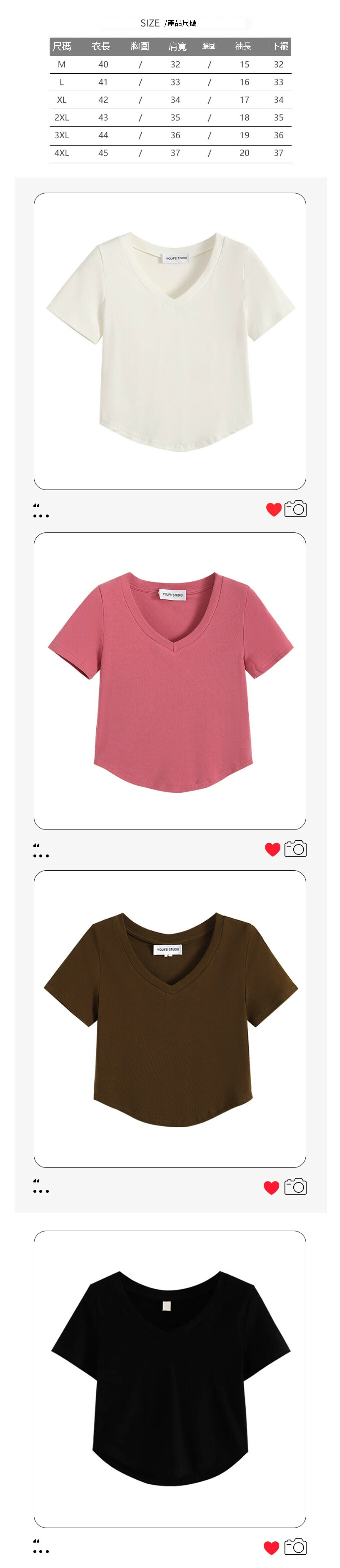 熱賣v領正肩短袖T恤【白色】【M-4XL碼】(下單後請聯絡客服確認發貨尺碼)