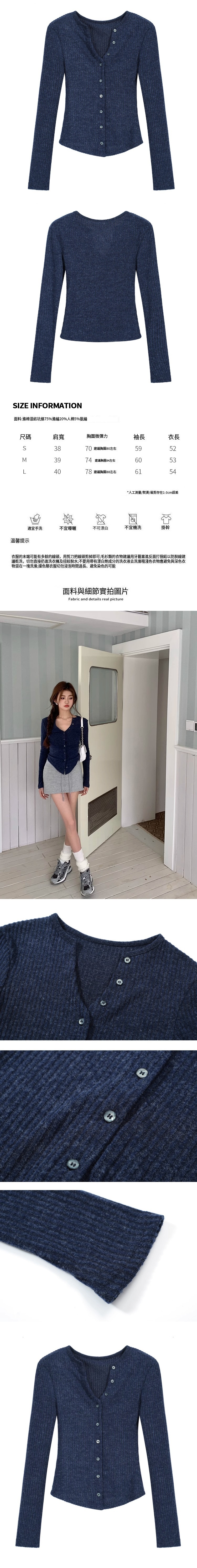熱賣V領短款長袖針織衫(藍色)(S-L碼)(下單後聯絡客服確認發貨尺碼)
