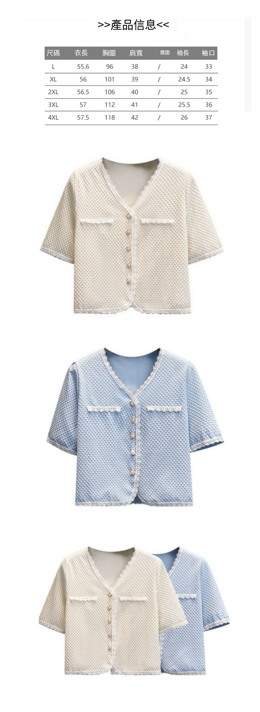熱賣v領短袖開衫襯衫【藍色】【L-4XL碼】(下單後請聯絡客服確認發貨尺碼)