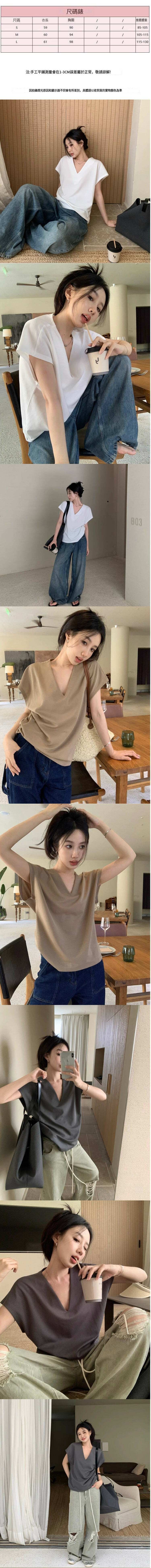 熱賣v領短袖T恤【白色】【S-L碼】(下單後請聯絡客服確認發貨尺碼)