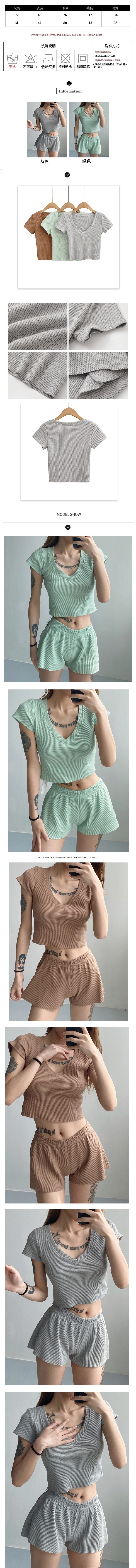 熱賣V領華夫格露臍T卹(卡其色)(S/M碼)(下單後聯絡客服確認發貨尺碼)