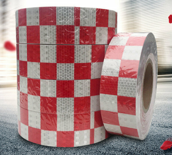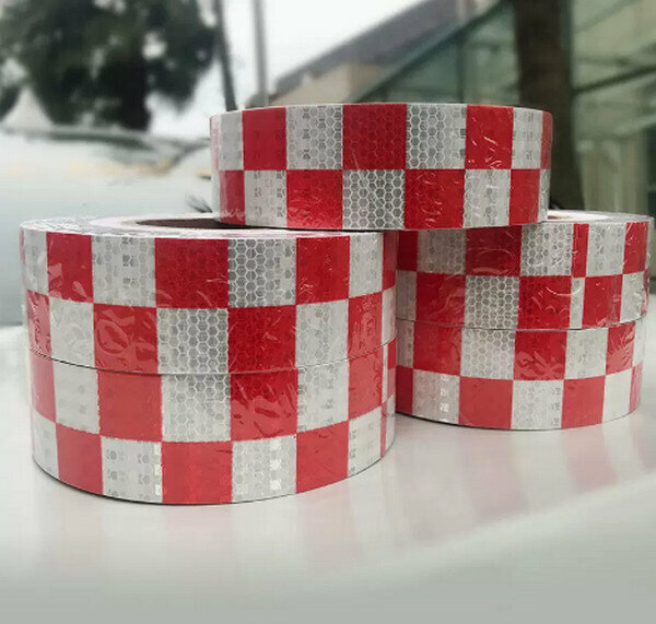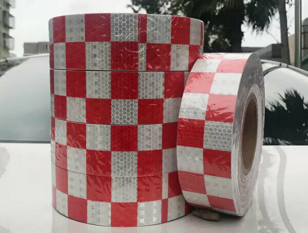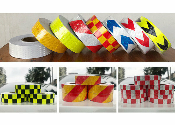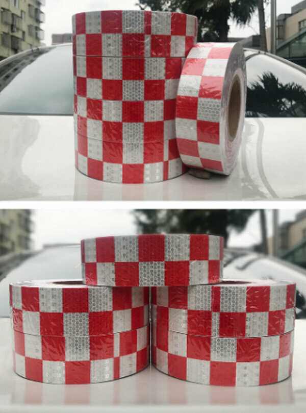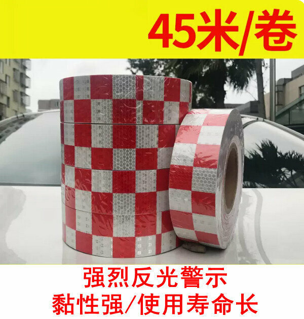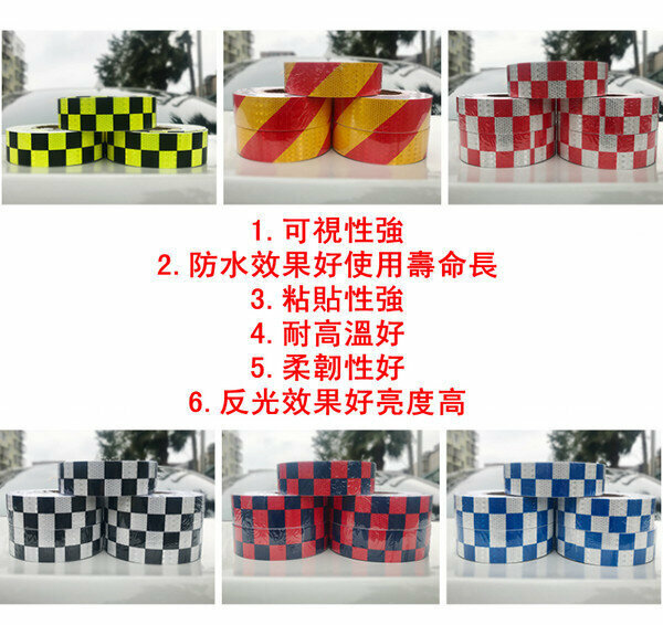 熱推車輛安全警示貼-黃黑格子款-強膠【150張/卷/45米】強烈反光警示