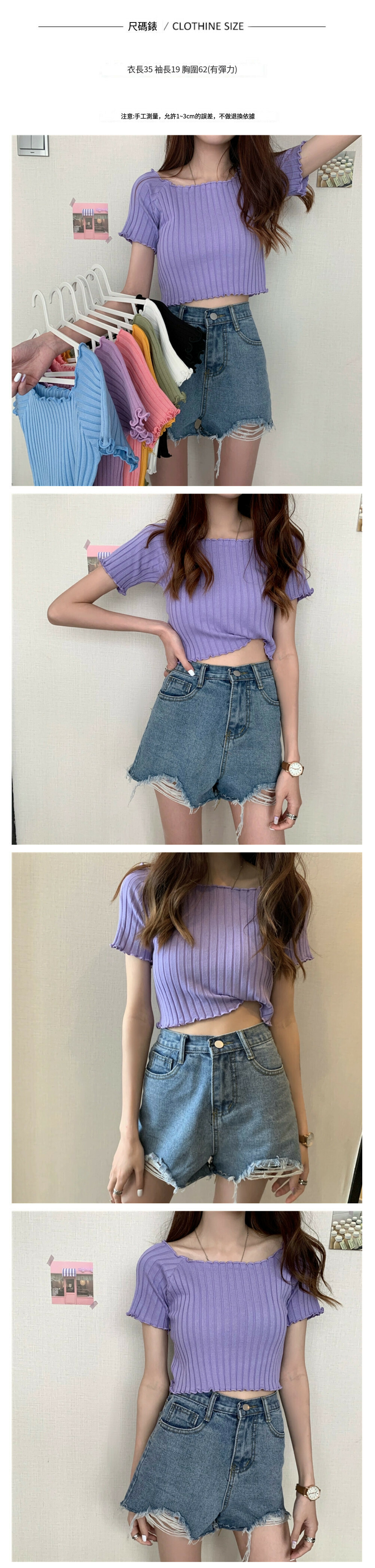 熱賣百搭木耳邊針織短袖t恤【芥茉綠】【均碼】