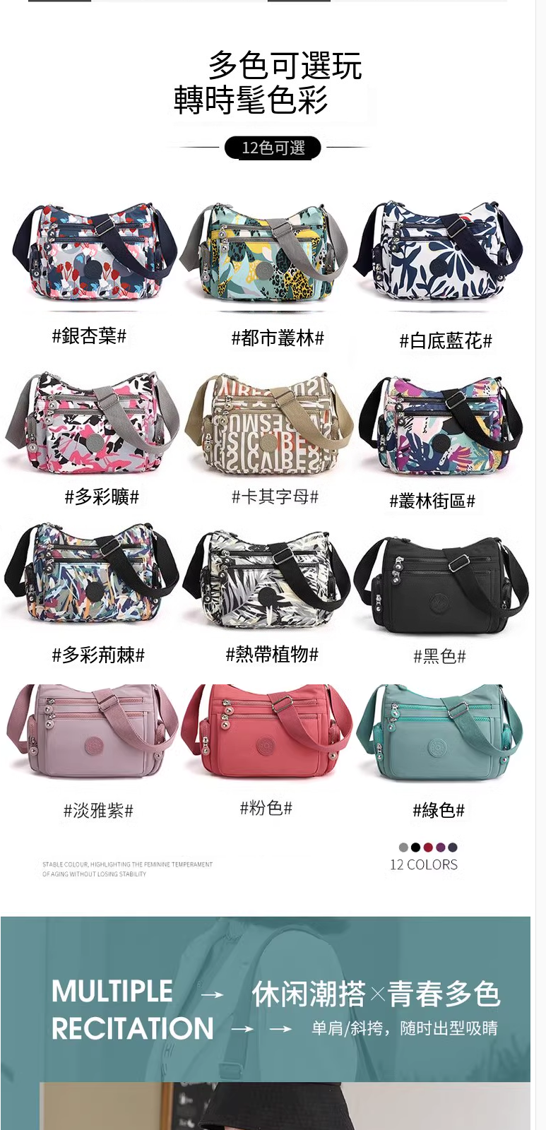 熱賣百搭尼龍布斜挎包 韓版單肩帆布休闲包包【熱帶植物】