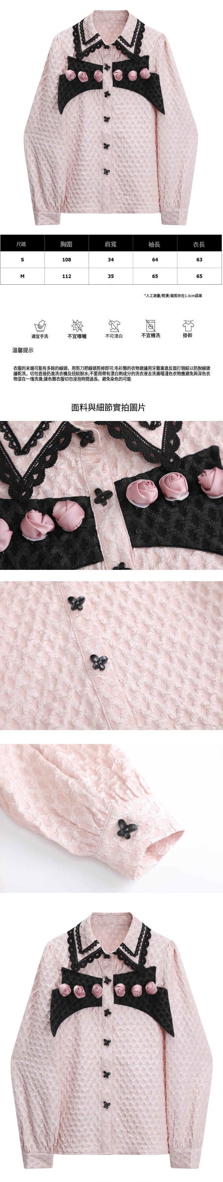 熱賣華夫格蕾絲花邊襯衫(粉色)(S/M碼)(下單後聯絡客服確認發貨尺碼)