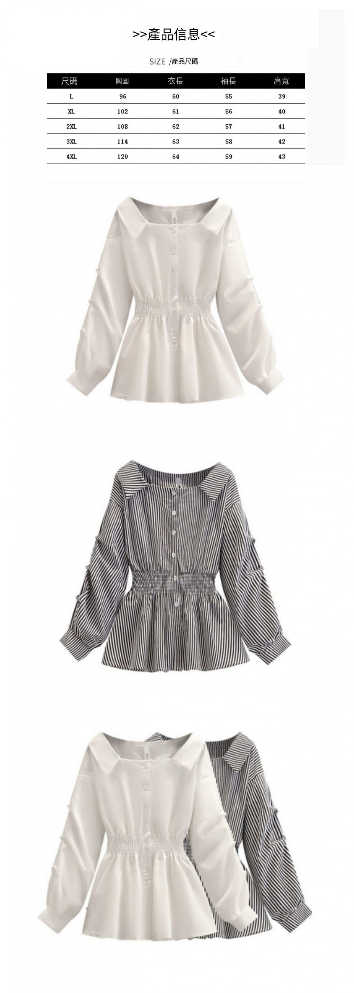 熱賣收腰遮肚長袖襯衫【條紋】【L-4XL碼】(下單後請聯絡客服確認發貨尺碼)