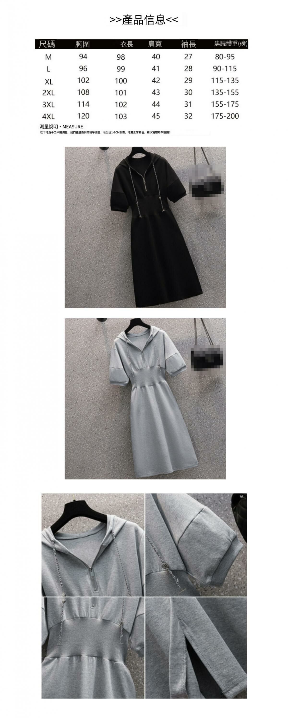 熱賣收腰連帽連衣裙【黑色】【M-4XL碼】(下單後請聯絡客服確認發貨尺碼)