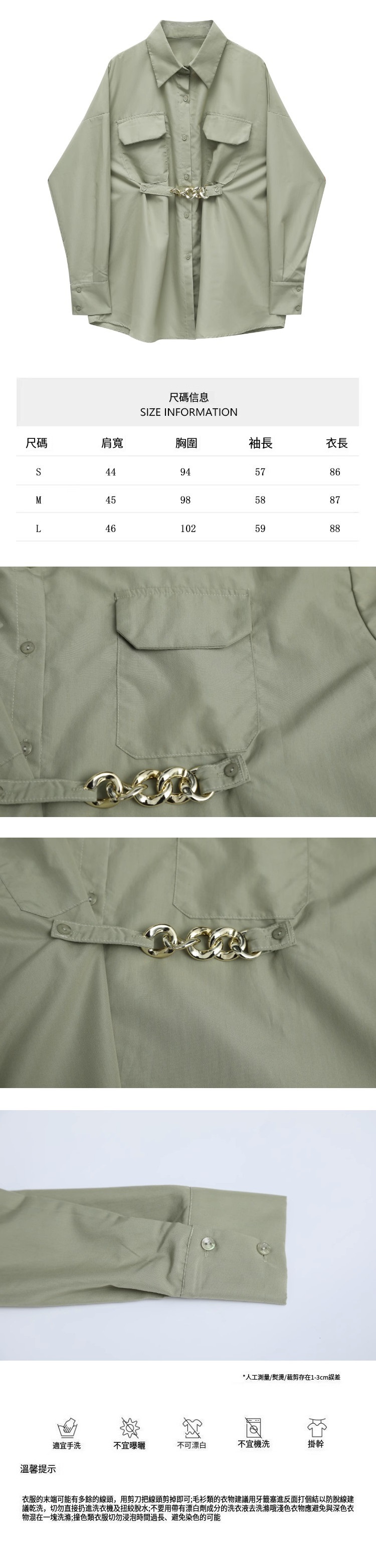熱賣收腰長袖襯衫(綠色)(S-L碼)(下單後聯絡客服確認發貨尺碼)