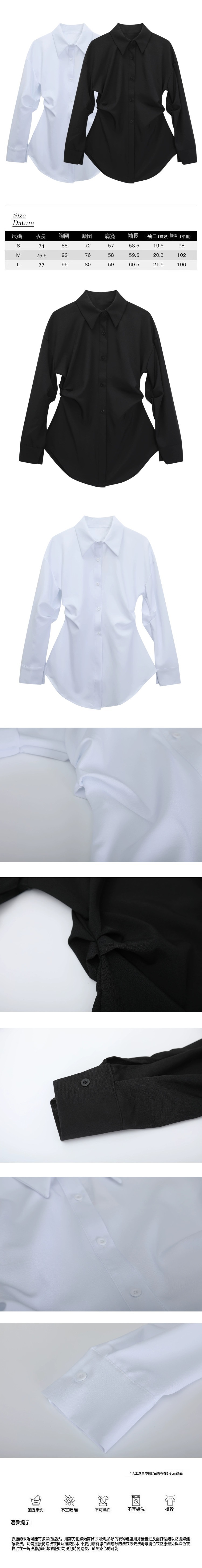 熱賣收腰長袖襯衫(白色)(S-XL碼)(下單後聯絡客服確認發貨尺碼)