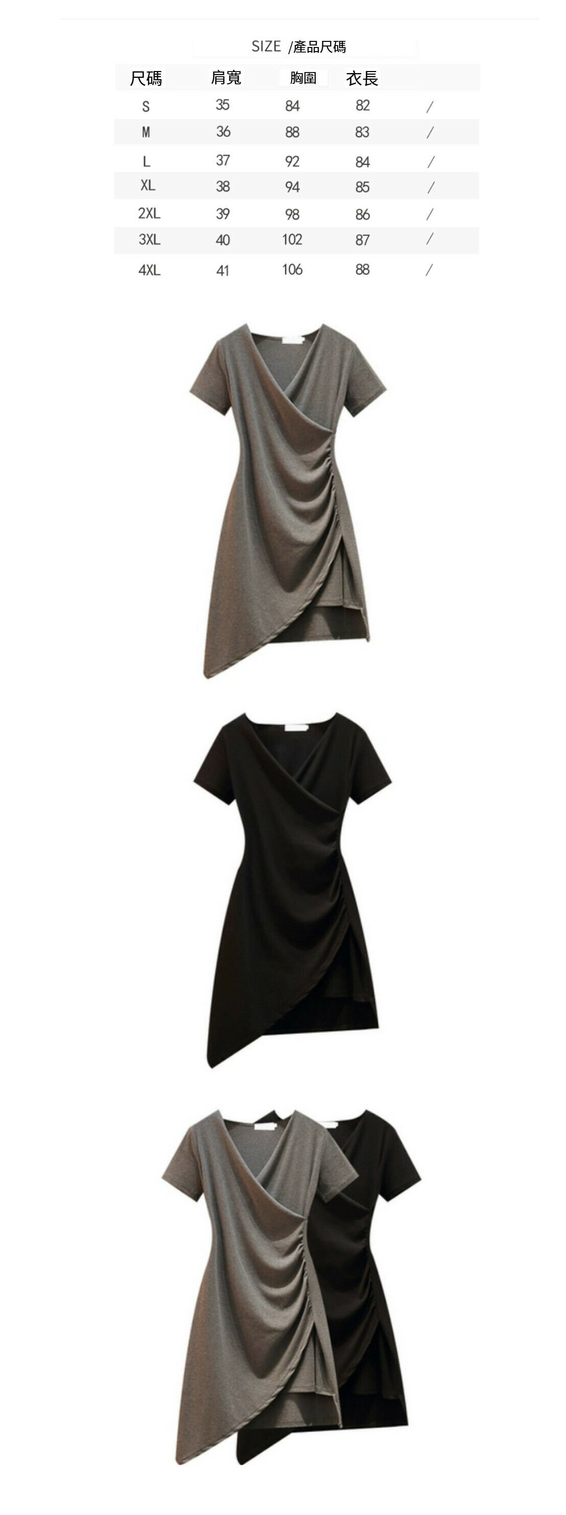 熱賣收腰V領連衣裙【灰色】【S-4XL碼】(下單後請聯絡客服確認發貨尺碼)