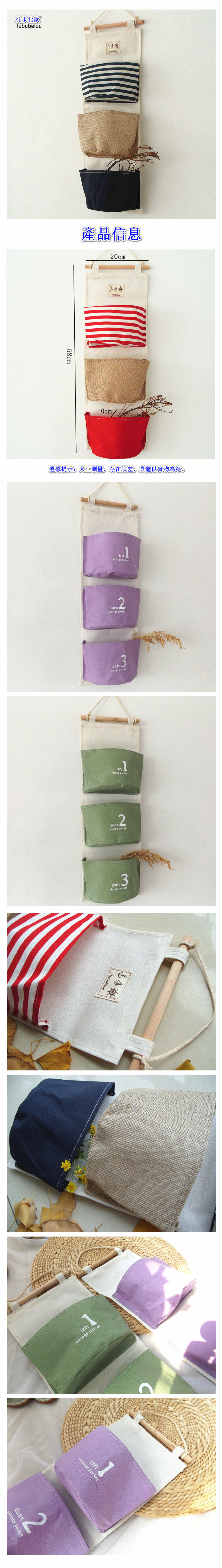 熱賣牆掛式棉麻布藝收納掛袋【浪漫紫色數字三兜】【規格:58*20cm】