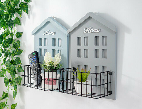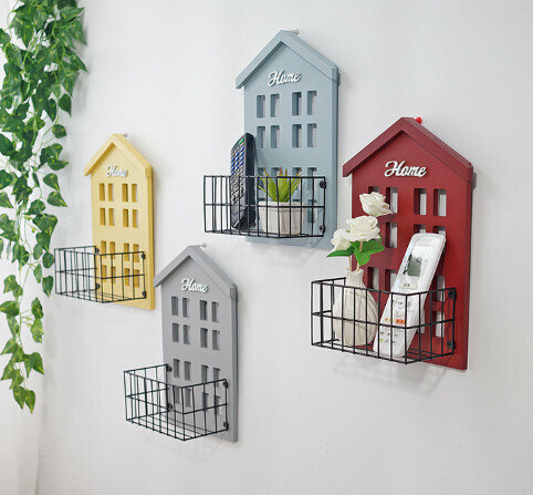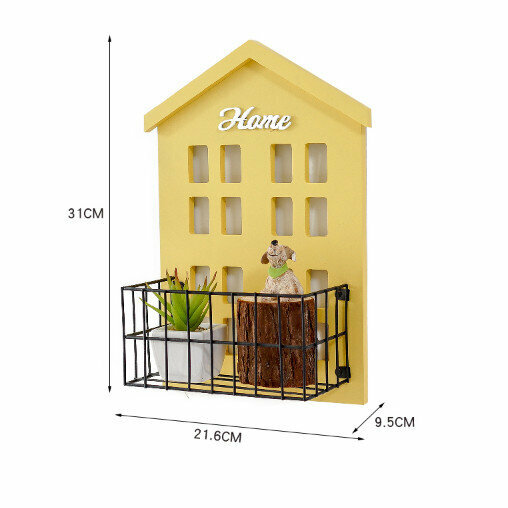 熱賣壁掛裝飾置物架【黃色小房子鐵籃】