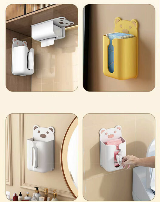 熱賣挂壁式免打孔紙巾盒(白棕熊)