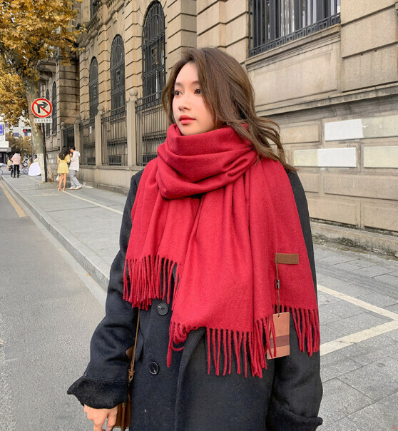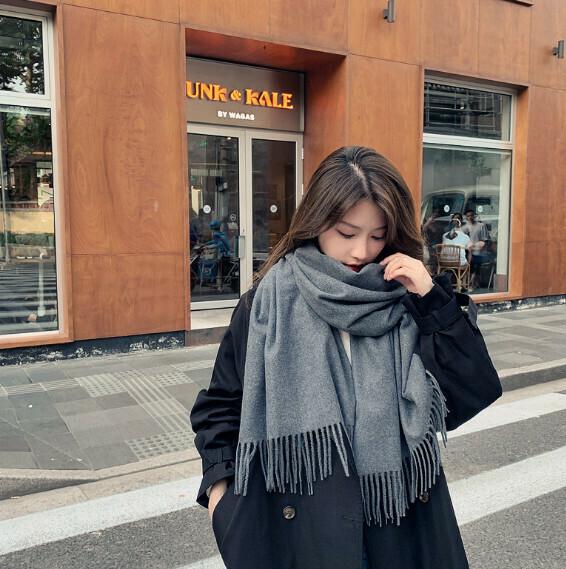 熱賣保暖加厚純色羊絨圍巾(碳灰色)(尺寸:200*70cm)