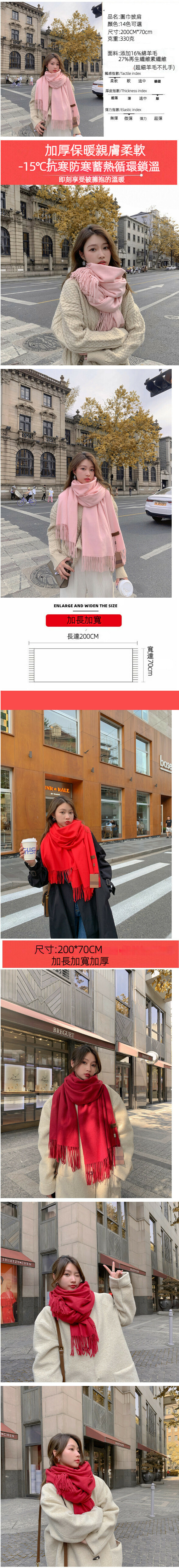 熱賣保暖加厚純色羊絨圍巾(粉色)(尺寸:200*70cm)