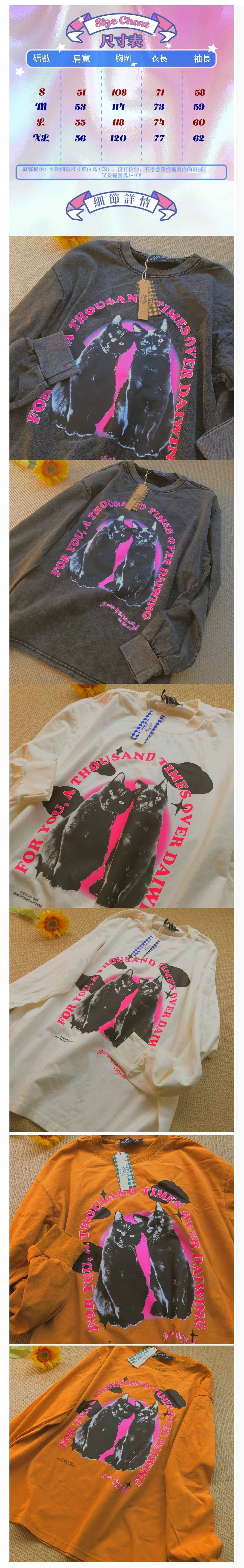 熱賣洗水貓貓情侶長袖T恤【卡其】【S-XL碼】(下單後請聯絡客服確認發貨尺碼)