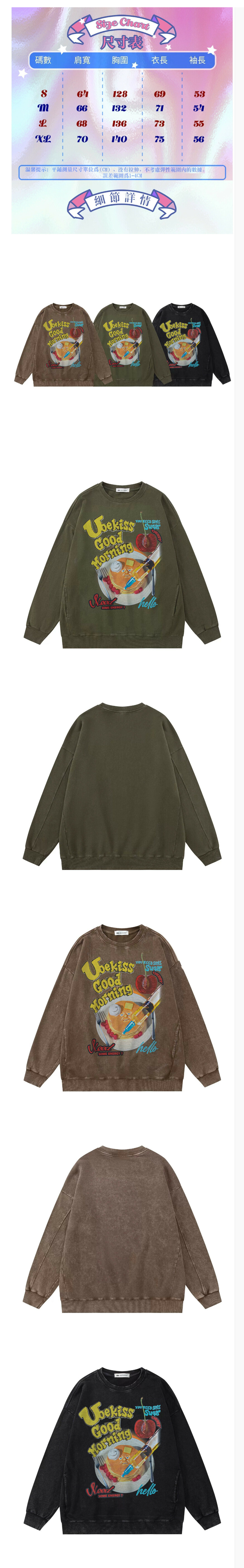 熱賣洗水圓領情侶卡通衛衣【咖啡】【S-XL碼】(下單後請聯絡客服確認發貨尺碼)