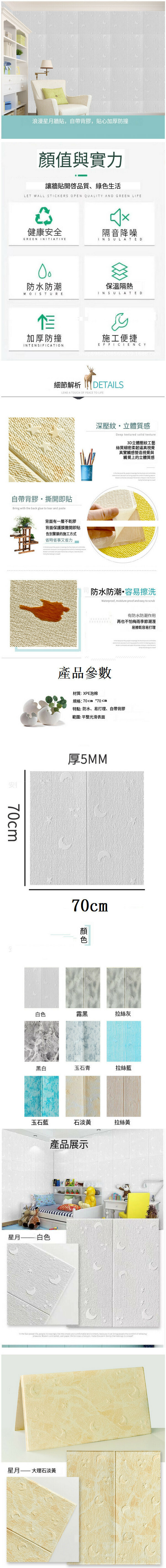 熱賣防水防潮3d立體自粘墻貼紙【方塊星月黑白】【70*70cm*5mm】