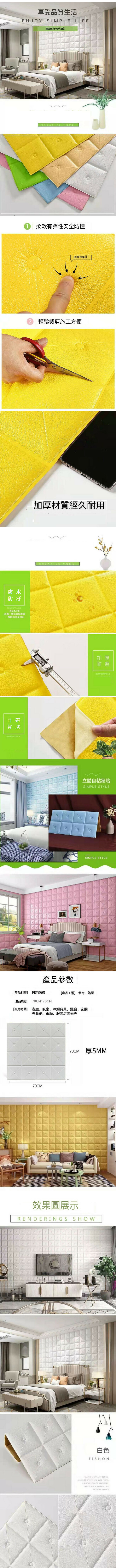 熱賣防水防潮自粘3d立體紐扣墻貼墻紙【亮黃色】【70cm*70cm*5mm】