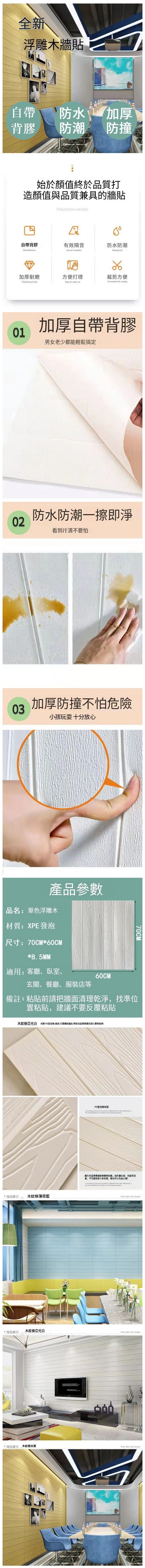 熱賣防水防潮自粘3d立體浮雕木墻貼墻紙【浮雕木紋-海藍色】【60cm*70cm*8mm】