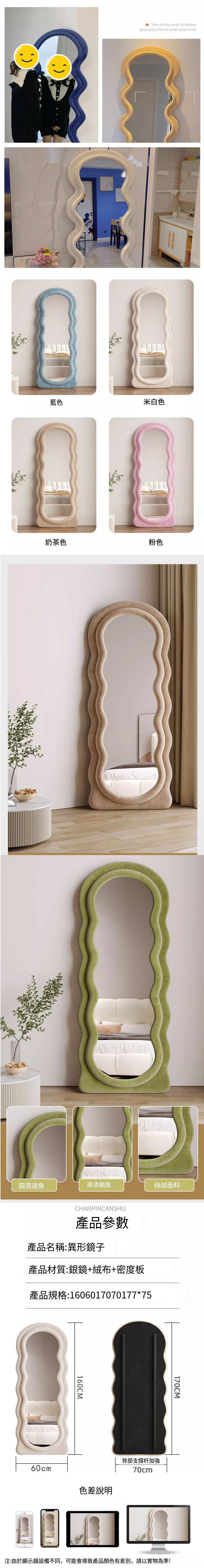 熱賣波浪全身落地鏡(【米白色】60*160cm)
