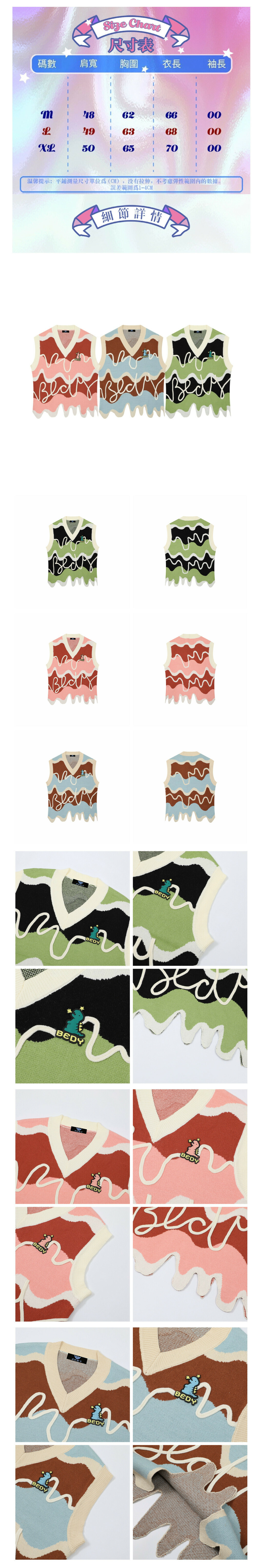 熱賣波浪紋針織背心無袖毛衣【藍色】【M-XL碼】(下單後請聯絡客服確認發貨尺碼)
