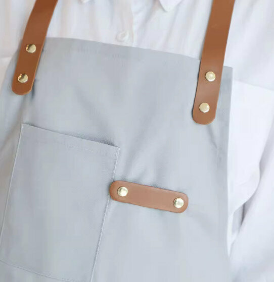 熱賣西餐廳奶茶花藝店工作圍裙(防水帆布交叉-卡其色)