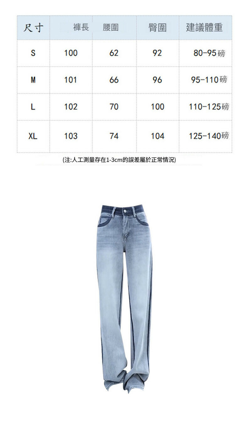 熱賣磨白撞色高腰闊腿牛仔褲(圖片色 S碼-L碼)(下單後請聯絡客服確認發貨尺碼)