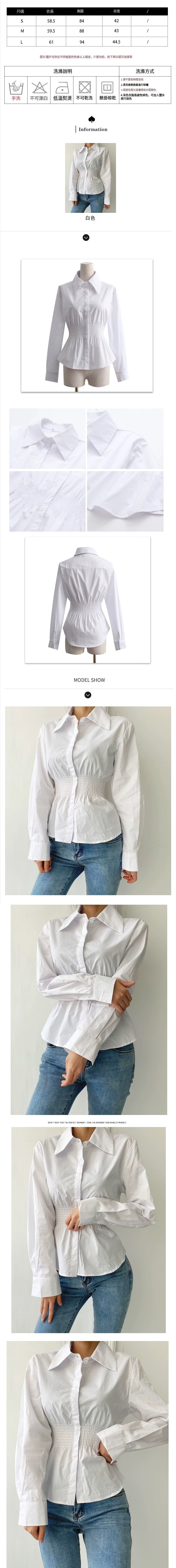 熱賣白色鬆緊彈力收腰襯衫(S-L碼)(下單後聯絡客服確認發貨尺碼)
