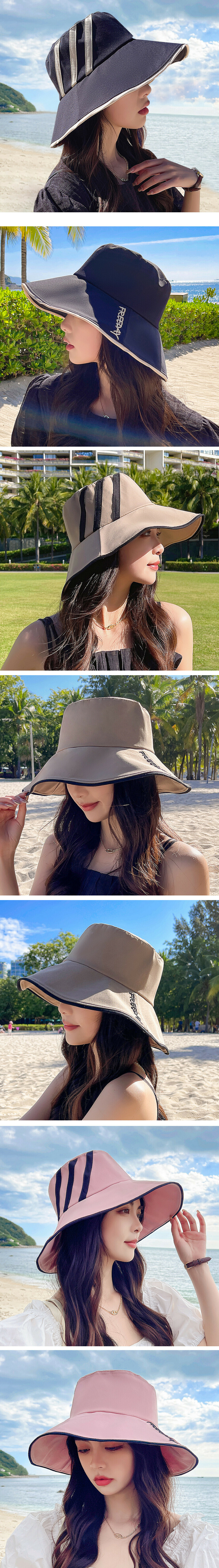 熱賣寬簷漁夫帽【E-340米色三杠漁夫帽】【可調節】