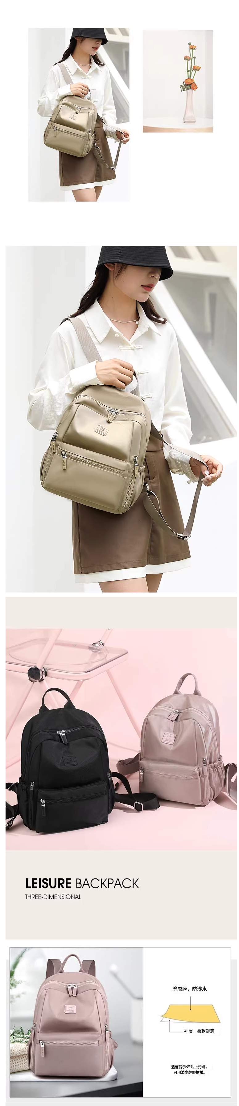 熱賣雙肩包女 旅行牛津布背包 帆布包【卡其色】