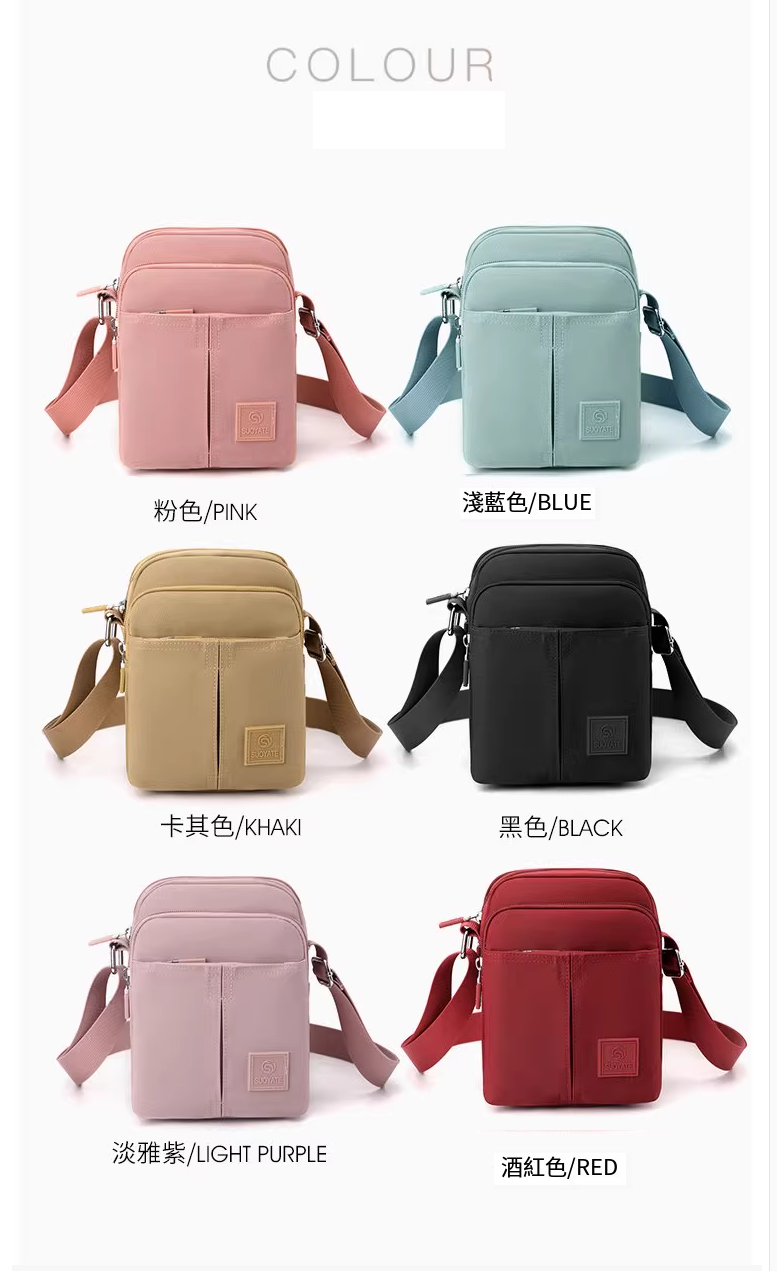 熱賣女士包 迷你休閒斜挎手機包 時尚尼龍包 單肩包 零錢防水布包【淡雅紫】