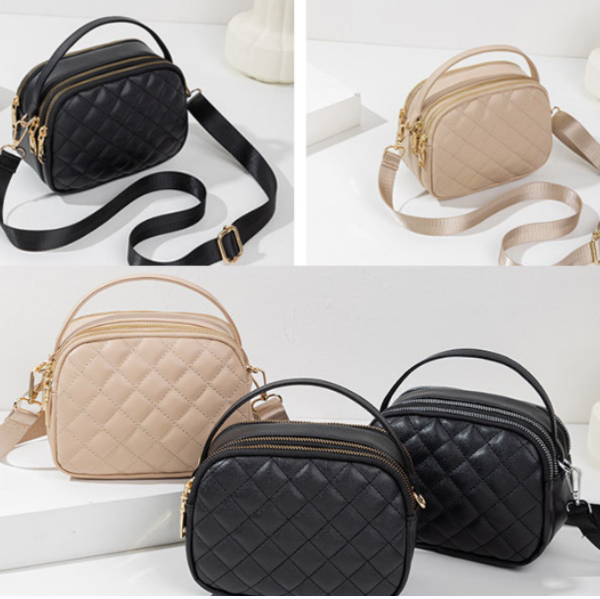 熱賣女士時尚簡約防水通勤斜挎包(精選pu黑金色18.5cm*9cm*13cm)