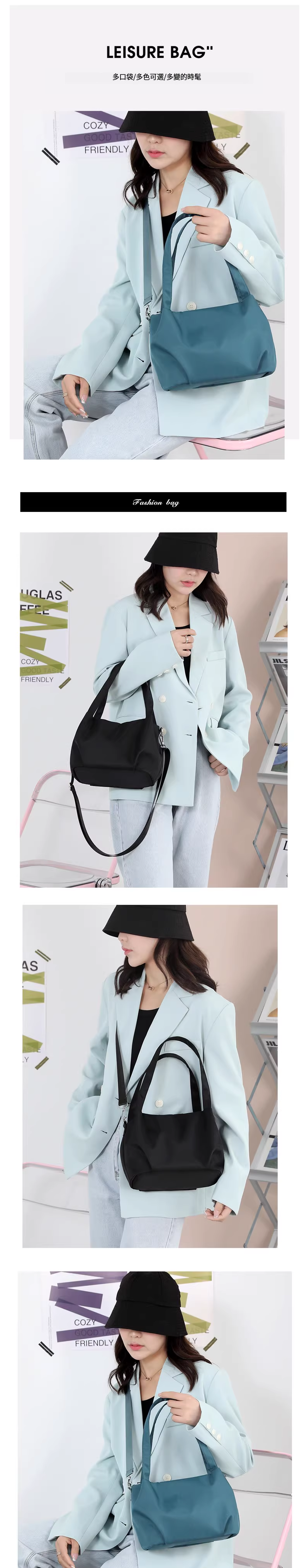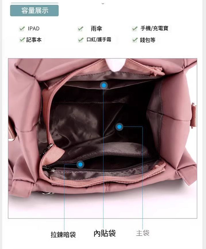 熱賣女士輕便單肩包 斜挎包大容量 簡約尼龍防水手拎包【暗粉色】
