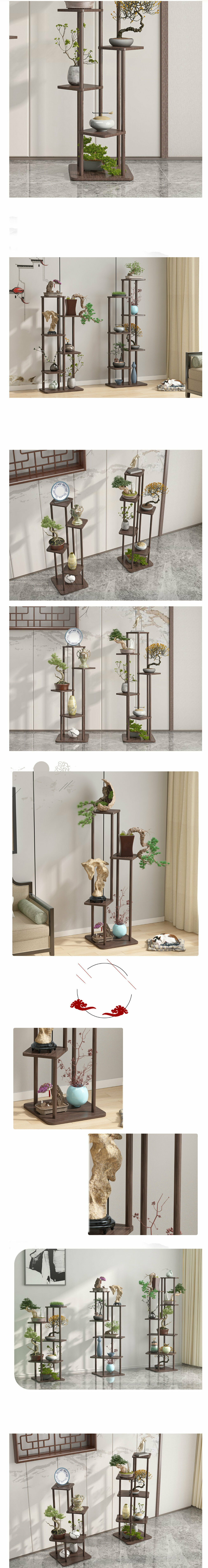 熱賣木製落地式花架(中韻二號【全胡桃木色】7層)